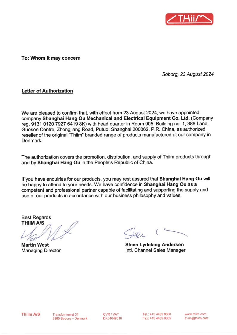 2024年丹麥THIIM工廠授權(quán)上海航歐中國(guó)區(qū)代理
