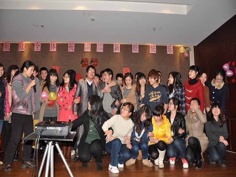 2012年3月9日,公司集體為兩對新人舉辦婚禮,在舉杯換盞之間兩對新人幸福地接受了來自同事的祝福和公司濃濃的情意,在這么一個大家庭里,在每一個燦爛笑容的背后,我們的心中蕩漾的是甜蜜,是溫馨……