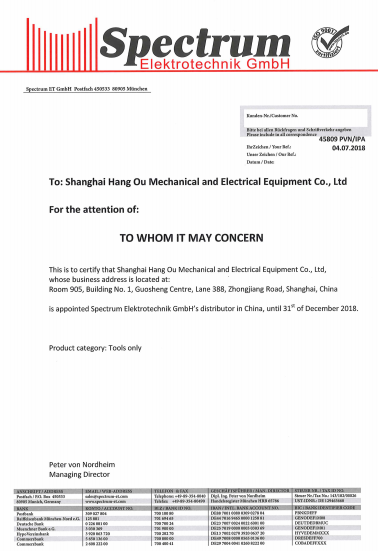 2018年 SPECTRUM工廠上海航歐中國區銷售